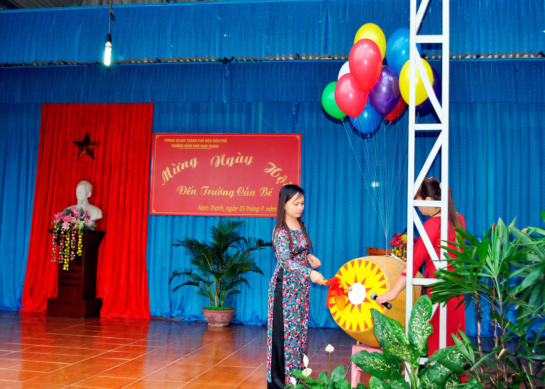 Trong " Ngày hội đến trường của bé " cô giáo Nguyễn Thị Vinh hiệu trưởng nhà trường thay mặt cho tập thể cán bộ giáo viên - nhân viên trong trường trò chuyện với các bé trong ngày hội. Qua trò chuyện cô hiệu trưởng đã ôn lại những thành tích đã đạt được trong năm học vừa qua, và đưa ra một số chỉ tiêu phấn đấu trong năm học 2016-2017. Những tràng pháo tay nổ giòn giã như cùng hứa sẽ đoàn kết , phấn đấu đạt kết quả cao nhất trong năm học. Ngay sau khi trò chuyện tiếng trống khai trường vang lên giòn giã báo hiệu năm học mới bắt đầu với bao niềm tin, hy vọng.