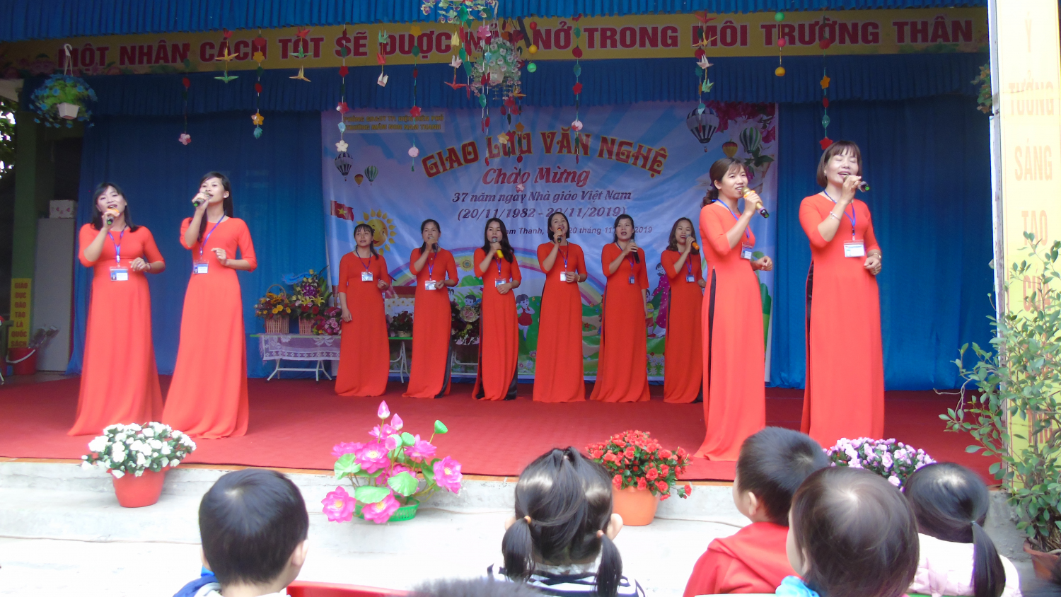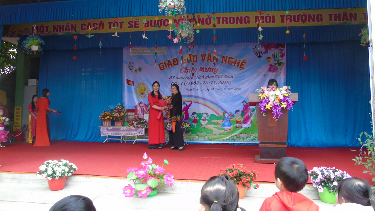Trong không khí vui tươi, phấn khởi, cô giáo Nguyễn Thị Nhàn – hiệu trưởng nhà trường thay mặt cho tập thể cán bộ, giáo viên, nhân viên lên phát biểu tri ân thầy cô. Tại buổi giao lưu nhà trường vinh dự được đón nhận những bó hoa tươi thắm của các tổ chức, đoàn thể chúc mừng cô trò nhà trường. Buổi chiều ngày 20/11 nhà trường phối hợp với đoàn thanh niên tổ chức cho các con trong điểm bản khá được xem các tiết mục văn nghệ do các anh chị khối mẫu giáo lớn biểu diễn. Tối cùng ngày, Ban đại diện cha mẹ học sinh kết hợp với nhà trường tổ chức bữa cơm thân mật gặp mặt dâu rể và các ban ngành đoàn thể lần thứ nhất.